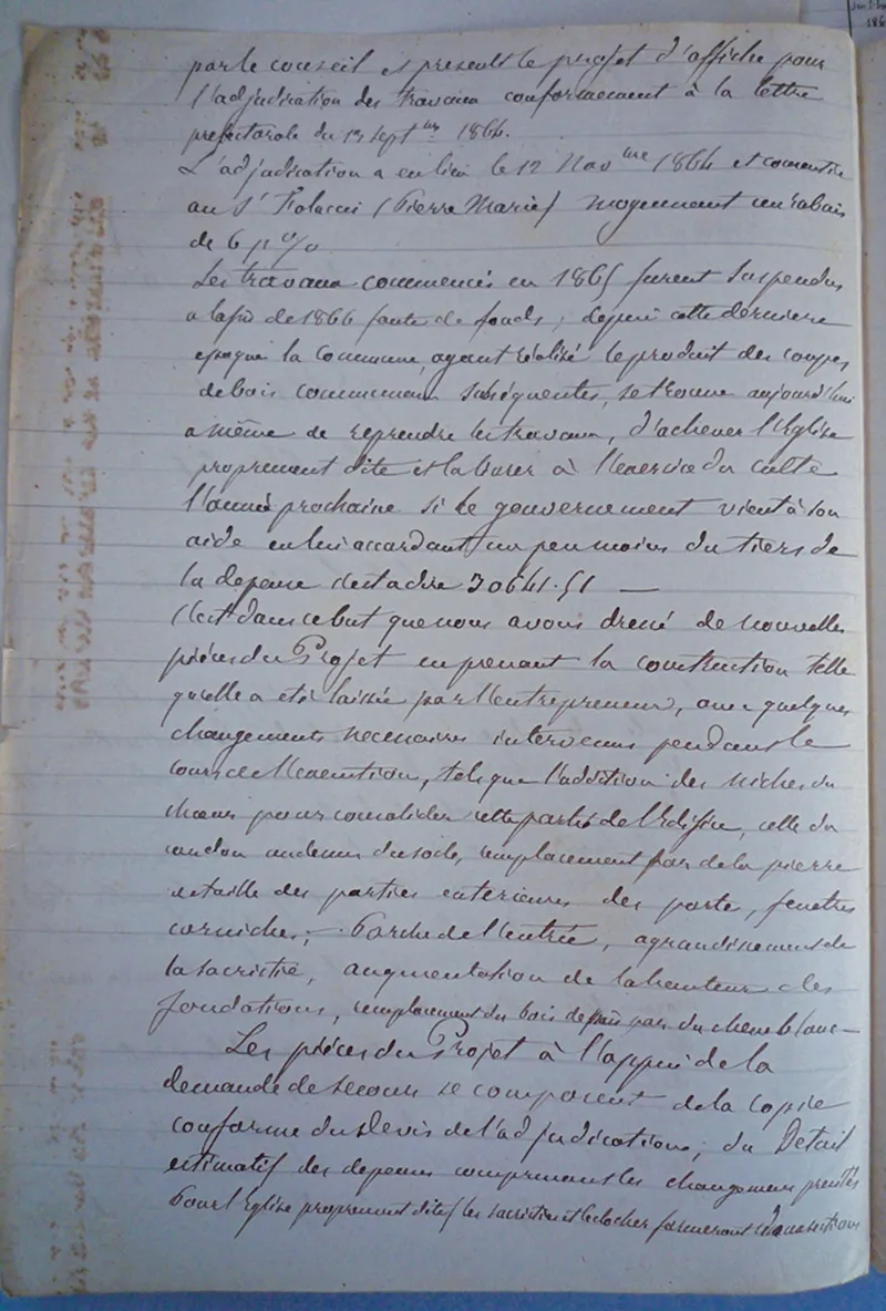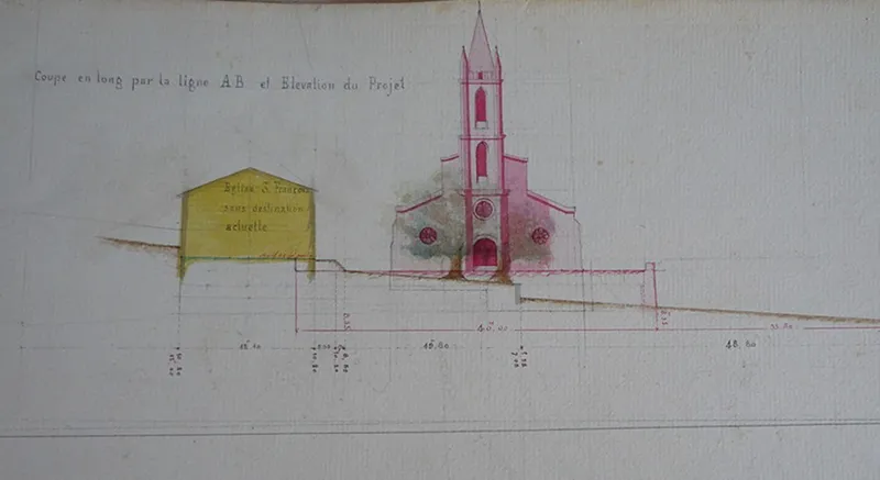 La municipalité décide simultanément de reconstruire l’église et de réorganiser le quartier de Santo, appelé à devenir le cœur administratif et religieux du village, accueillant écoles, gendarmerie et justice de paix.
