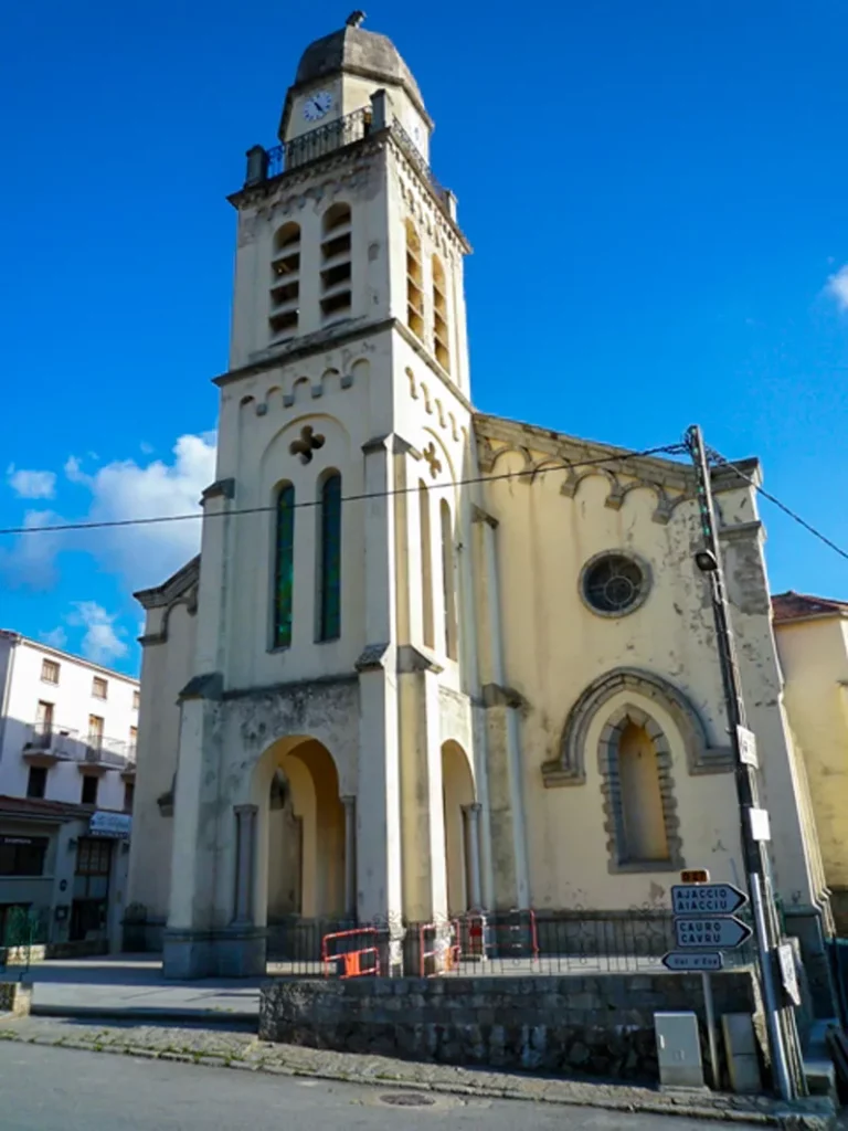 L’architecte ajaccien Louis Carrayol conçoit un clocher-porche inspiré de l’ancien couvent des Franciscains, modifiant sensiblement le dessin original. Les travaux sont achevés en 1927.