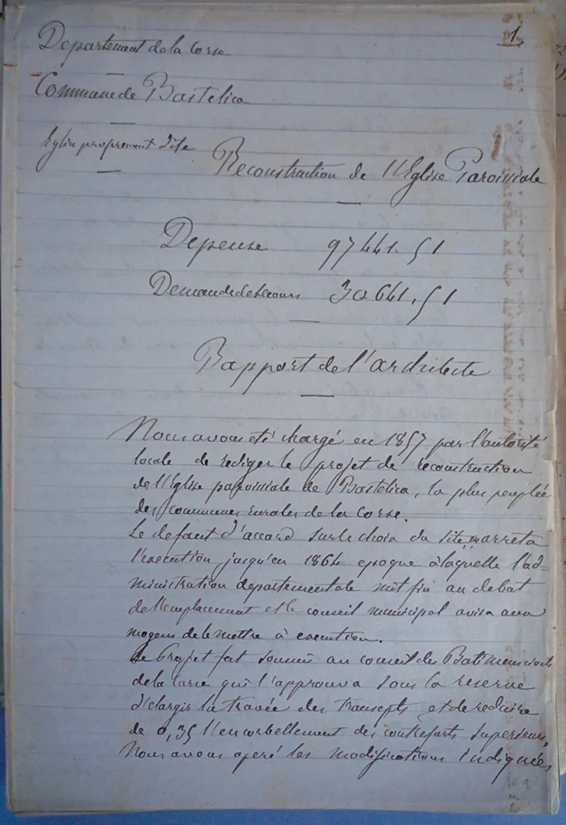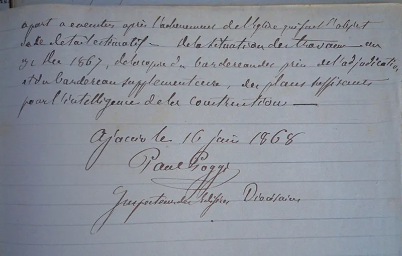 À Bastelica, il suit le projet sur plus de trente-cinq ans, adaptant les plans aux contraintes financières et aux interruptions successives du chantier.